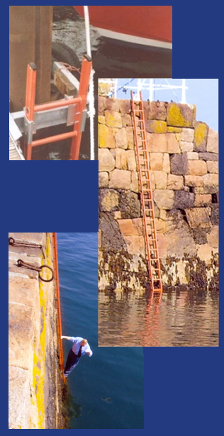 This type of ladder offers a high degree of weather resistance and provides a structure which is totally electrically insulated. Completely impervious to salt water, the Clow Marine Ladder has the ability to handle the extremes of being permanently submerged in both sea and fresh water.